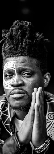 He termed this form of body art 'The Sacred Art of The Ori,'' which is a visible expression of one's spirit. He mostly employed this on the human figure. In this case, he drew inspiration from Orishas; Yoruba gods and goddesses to show a person in their most authentic form. He graphically conveys the insightful teachings of ancient Orishas into a work of art in a quest to seek ways to carry on their eternal knowledge in the present day. He graces his subjects with patterns using his pervasive white marker, based on an instinctive perception of what exists within his subject. Every contour, every stroke, and every symbol he produces has a deeper meaning, and he uses them to play with the subject's persona. His methodology of body painting immerses both his muse and himself in a spiritual bond with the African heritage and each other.